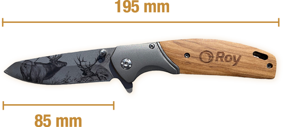 Štýlový a presný: S gravírovaním s loveckou tematikou predstavuje tento nôž štýlovú a funkčnú kombináciu, ideálnu na presnú prácu a všestranné outdoorové práce.